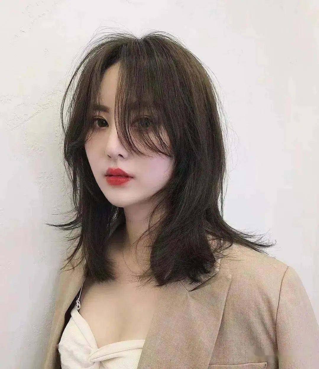 女生层次中长发,它活泼俏皮又不失女性味道,非常适合头发发量较少的女生,而且多层次的剪法会从视觉上增加发量的效果。