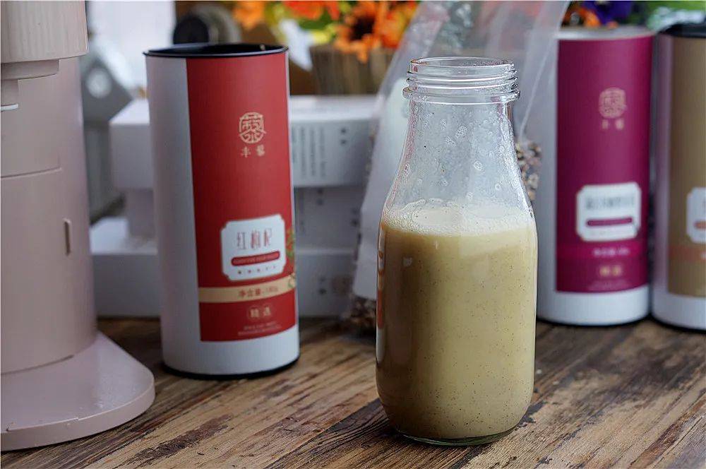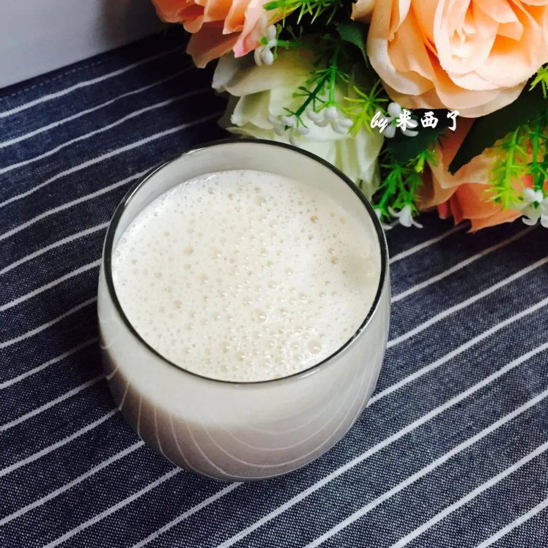 枸杞玫瑰豆浆 材料:黄豆80g、玫瑰花8朵、枸杞5g、清水1000ml 做法: 1. 养生机倒入1000ml清水,放入滤网; 2. 倒入黄豆80克、玫瑰花8朵、枸杞5克; 3. 放入豆浆罩,盖上盖子,选择豆浆键; 4.七磨七煮,全程需要30分钟左右; 5.结束后,按瞬间键放出,一口醇香,号称“冻龄豆浆”。