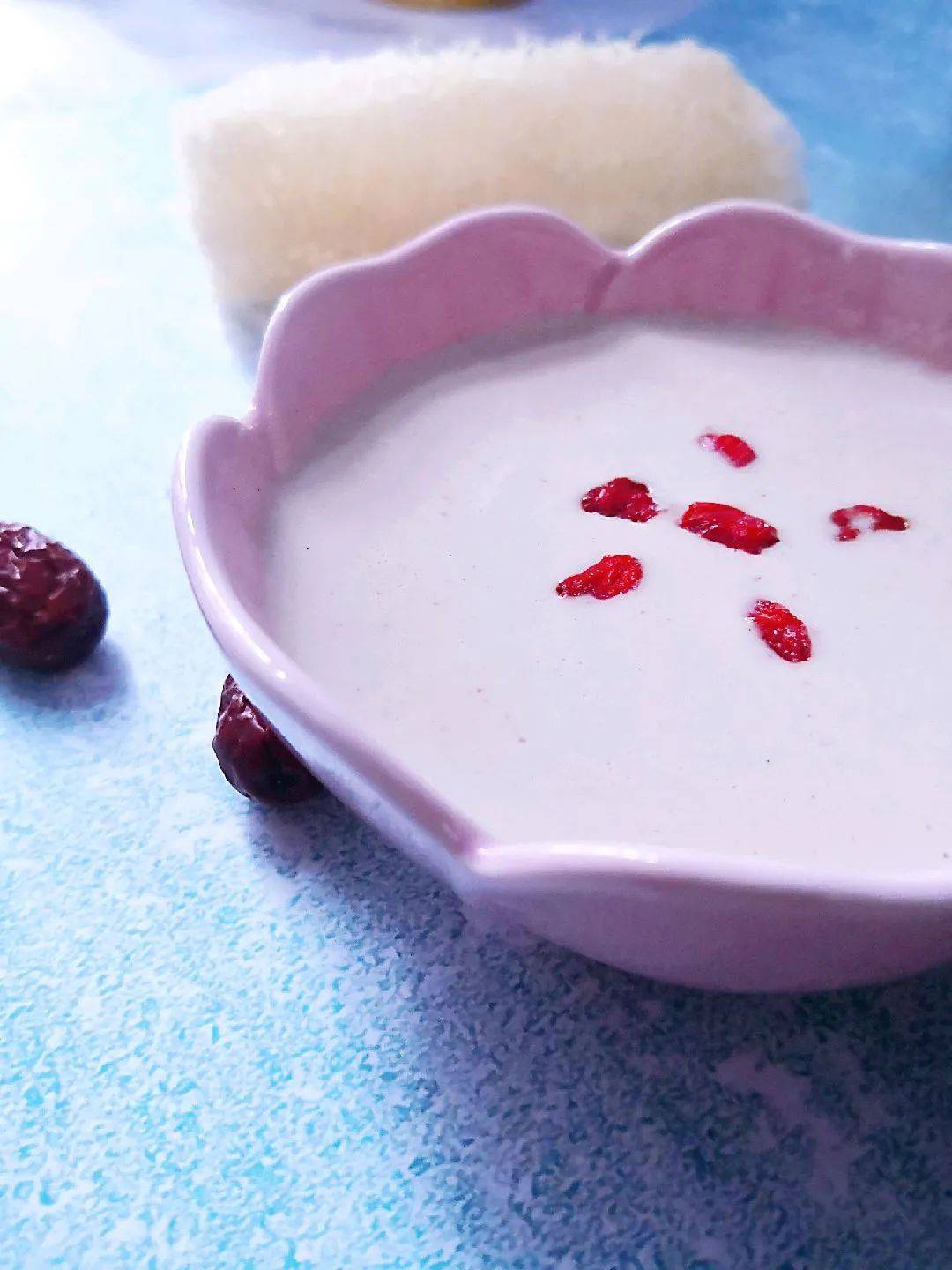 藜麦枸杞奶 材料:藜麦半小杯、黄豆半小杯、枸杞5粒 做法: 1. 藜麦、黄豆提前浸泡 2. 食材混合和水一起搅拌均匀后,选择五谷豆浆模式,将浆品打好 3.根据个人喜好决定要不要添加糖