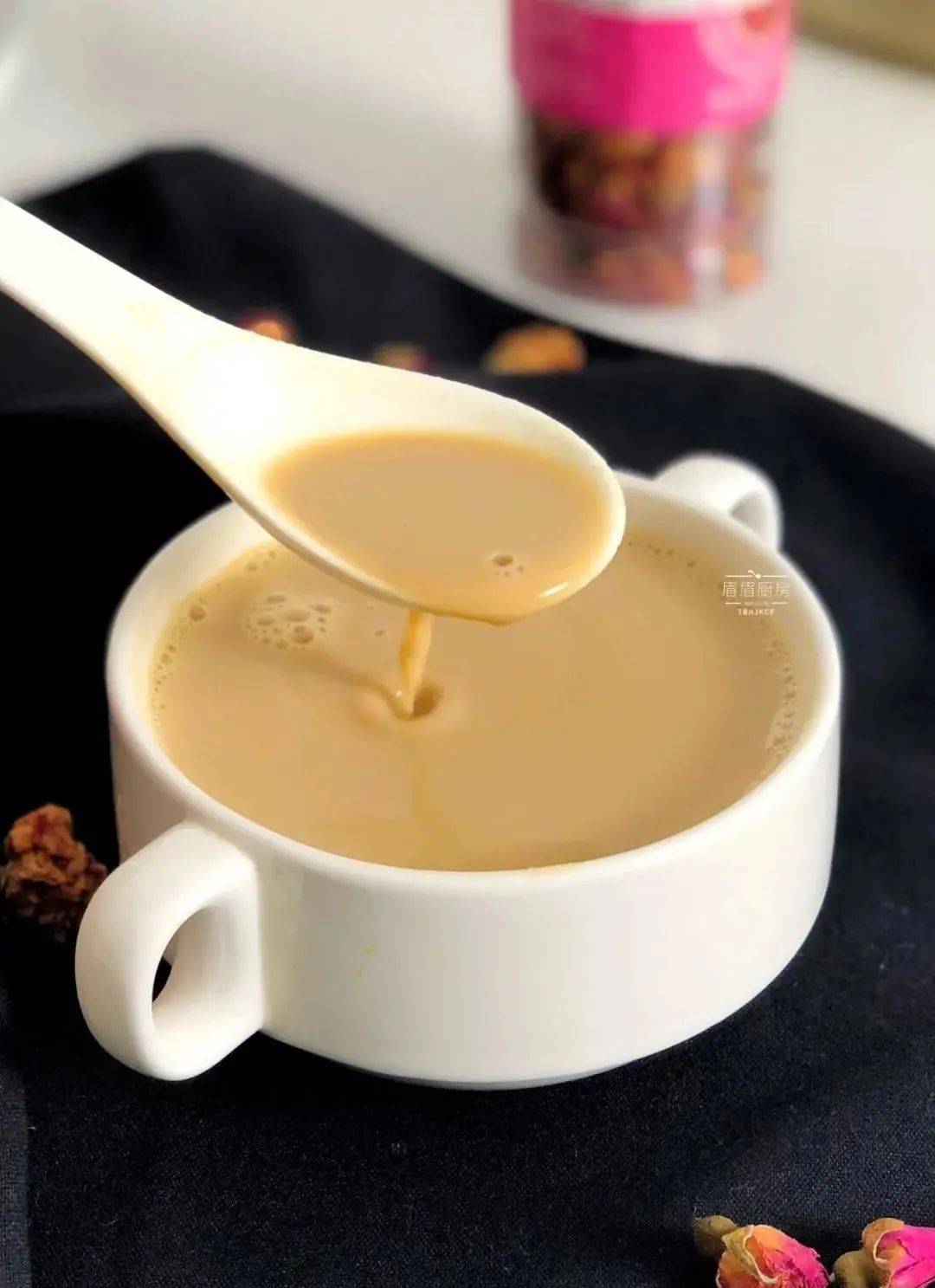 红茶豆浆 材料:豆浆500ML、红茶2大匙、糖适量 做法: 在黄豆浆做好的基础上,将其与红茶一起放入锅中小火煮开,注意煮豆浆的时候最好不停搅拌以防糊底,豆浆快煮开的时候很容易扑出来,别离开锅子哦~煮好的豆浆滤掉茶叶根据个人口味加糖拌匀即可。