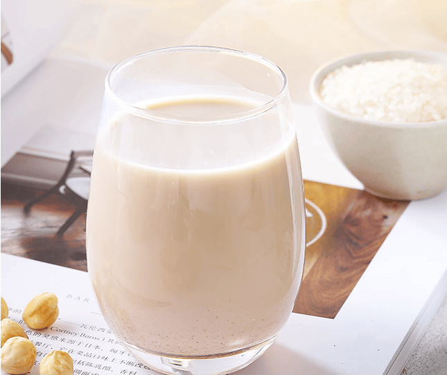 花生稻米奶 材料:米、花生、糖 做法: 1. 将米洗净浸泡约6小时,沥出水分放入果汁机中, 2.再按个人口味加入花生和糖,加入适量的水,混合搅制出浆液。