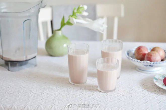 红枣花生奶 材料:红枣8颗、花生20克、黄豆15克、清水800克 做法: 1. 食材处理好,可以按照个人喜好更改,一起到入破壁机 2. 选择豆浆模式,30分钟就好了,丝滑香甜