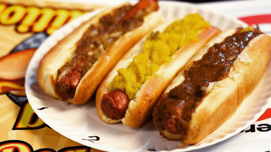 热狗(美国) 在美国,最流行的街头小吃非热狗莫属。在纽约、芝加哥和底特律等大城市的热狗摊和餐车上都能买到热狗,很多餐馆、便利店以及体育馆里都会有供应。