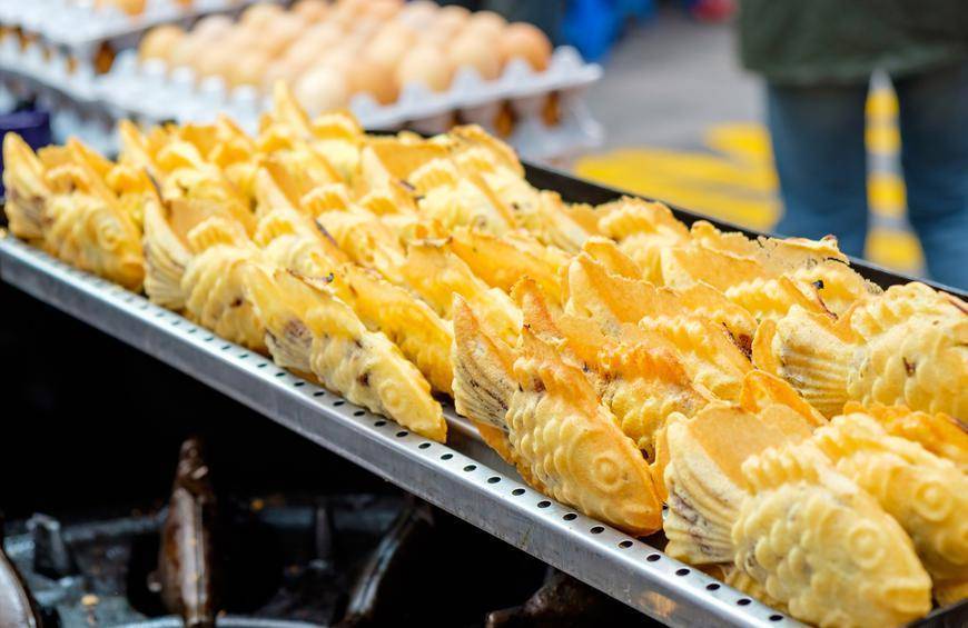 小鱼饼里面常见的馅料是红豆沙,除此之外还有糕点奶油、巧克力甚至披萨馅料等。