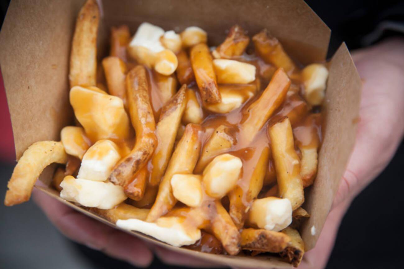 肉汁奶酪薯条(加拿大魁北克) 肉汁奶酪薯条起源于加拿大法语区的魁北克省,这是加拿大的传统街头小吃,包括炸薯条、奶酪凝乳和棕色肉汁。在加拿大,不只街上,很多餐馆,甚至是麦当劳、汉堡王、温迪和肯德基等连锁快餐店里也能找到肉汁奶酪薯条。