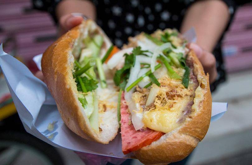 越南人制作了自己的法式长棍,然后加入一种或多种肉类,比如五花肉、烤鸡、越南香肠、猪肝酱或番茄沙丁鱼罐头酱,通常还会添加蔬菜,比如黄瓜、香菜、腌制的胡萝卜和白萝卜,然后是调味酱,比如辣椒酱、蛋黄酱和美极调味酱等,这就是越南三明治了。