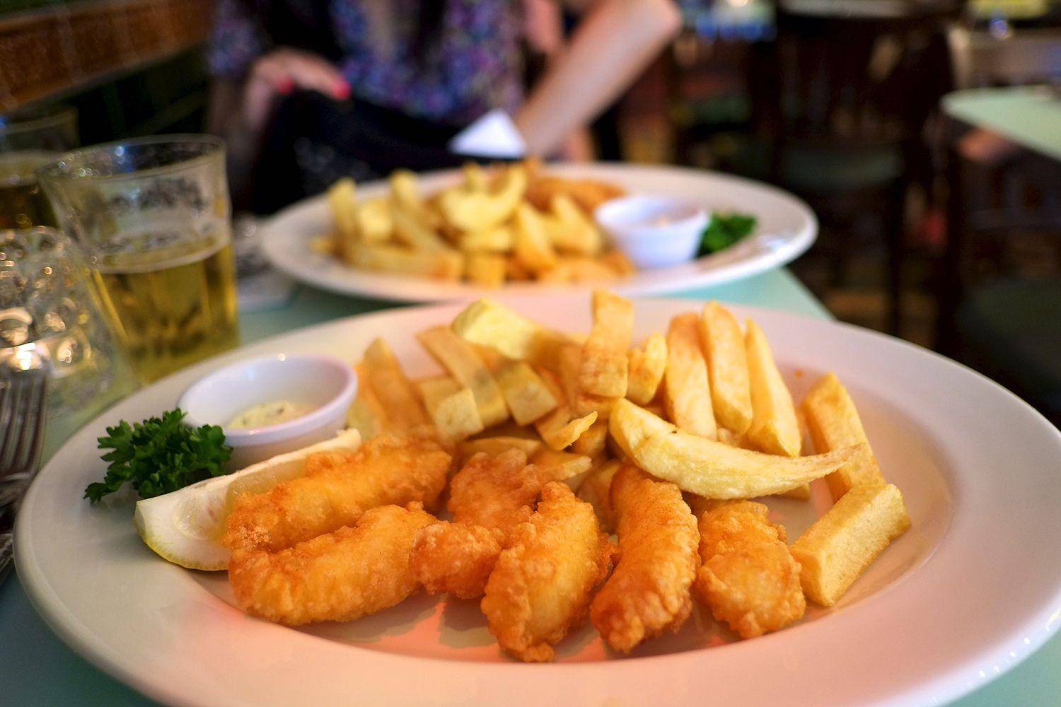 1800年代中期,英国人把鳕鱼或黑线鳕做成炸鱼,然后和薯条搭配在一起食用,上面会撒上盐和醋,通常情况下,还会有豌豆泥、咖喱酱、肉汁或番茄酱等。传统上,炸鱼薯条是用旧报纸包裹的,但现在一般使用的是防油纸(有时会印上报纸图案)。
