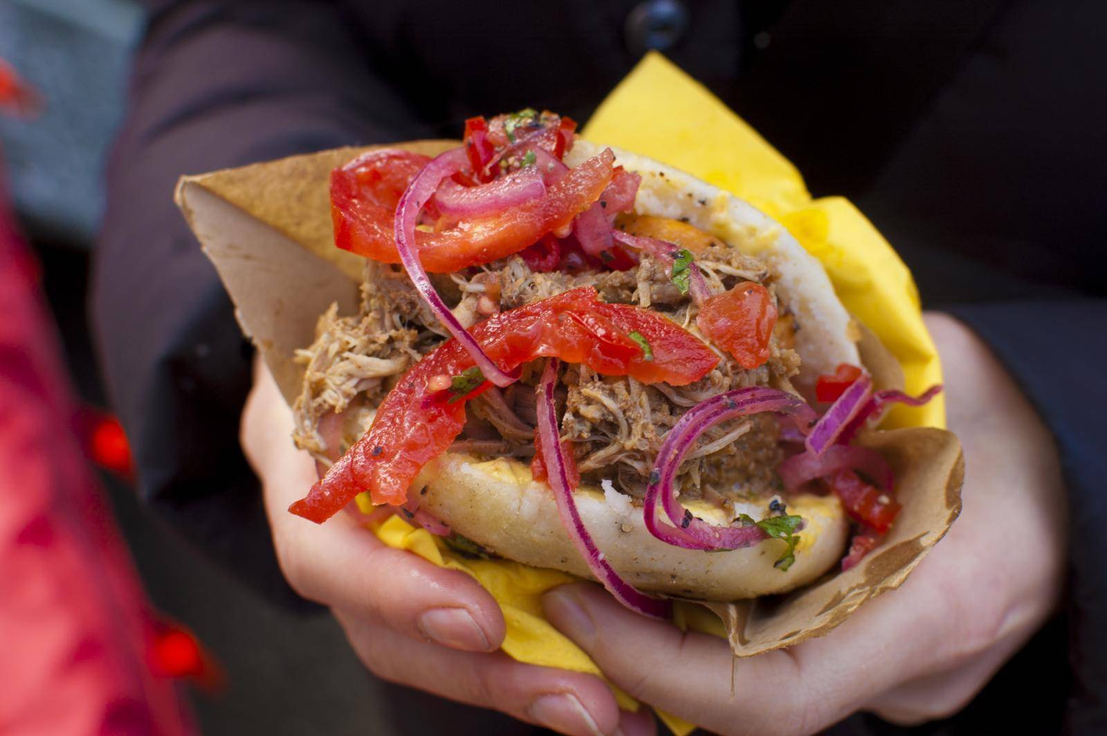 玉米饼(哥伦比亚和委内瑞拉) 玉米饼是哥伦比亚和委内瑞拉的主食。这种柔软厚实的馅饼是用玉米粉加上水和盐混合做成的,有时也会加入黄油、鸡蛋、牛奶或油等。