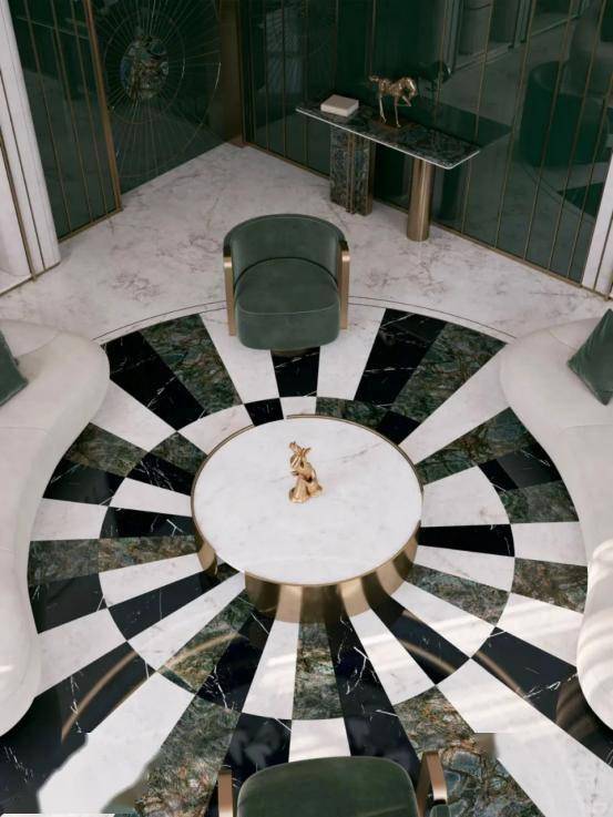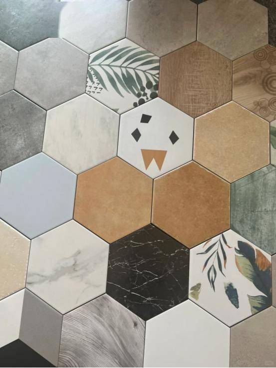 ⑶地面装饰 木地板、瓷砖是比较常见的地面装饰材料,但为了美观,为了迎合消费者的需求,衍生出了许多铺贴方式,比如常见的人字铺、异形铺砖、图案铺砖……