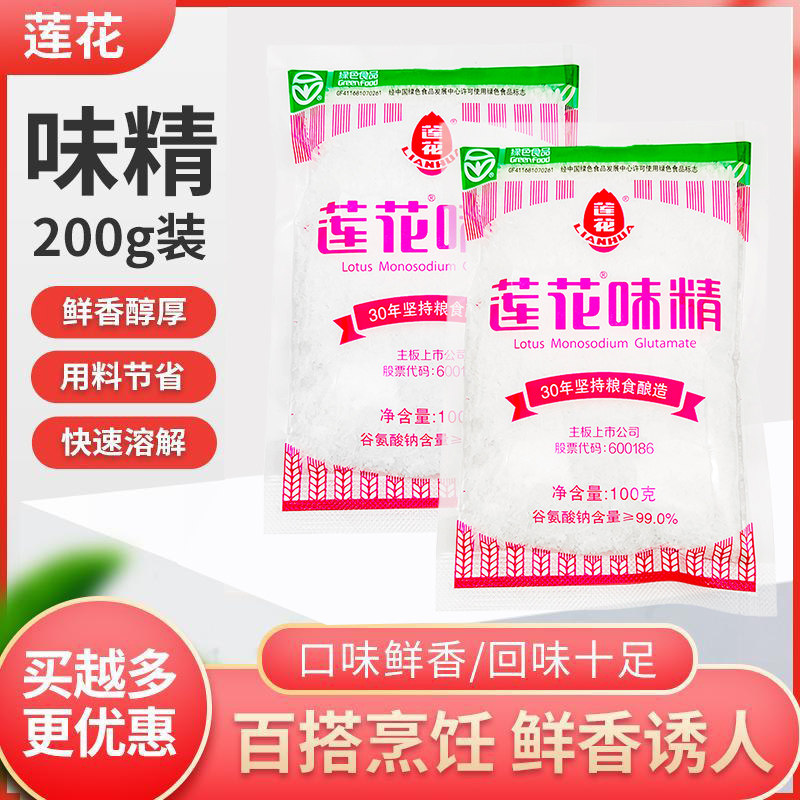 莲花味精家用200g*5袋无盐味精炒菜味精增鲜调料调味品餐饮店袋