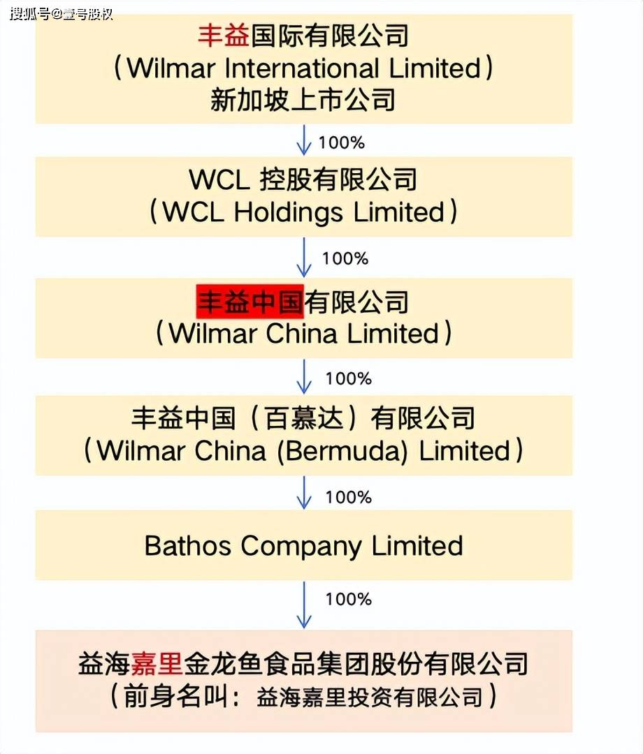 前面说了,原来是准备以丰益中国在香港上市的,但是后来计划终止,转而寻求在A股上市,上市主体就变成了益海金嘉里金龙鱼食品集团股份有限公司(简称“金龙鱼”),所以丰益中国的子公司丰益中国(百慕达)就将中国境内的粮油资产注入到金龙鱼身上,而金龙鱼也基本具备了在A股上市的条件。 为了符合国家税务总局的要求,2018年3月,丰益中国(百慕达)又将金龙鱼100%的股份转让给 Bathos Company Limited(简称“Bathos”),自此,金龙鱼上市前的股权架构基本确定,