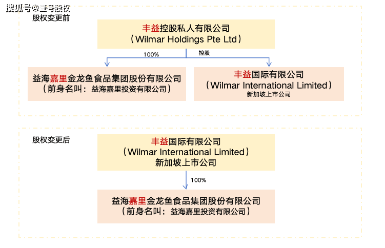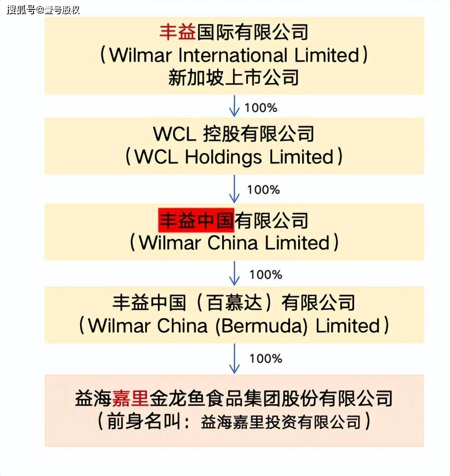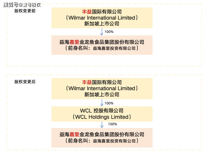 2009年8月,金龙鱼的控股股东又发生了改变,丰益国际将持有金龙鱼100%的股份转让给WCL 控股有限公司(简称:WCL 控股)。而WCL 控股是丰益国际的全资子公司,金龙鱼从丰益国际的子公司变成了孙公司。这次做股权结构调整的目的是在香港上市,但是后来丰益中国决定终止香港上市的计划。