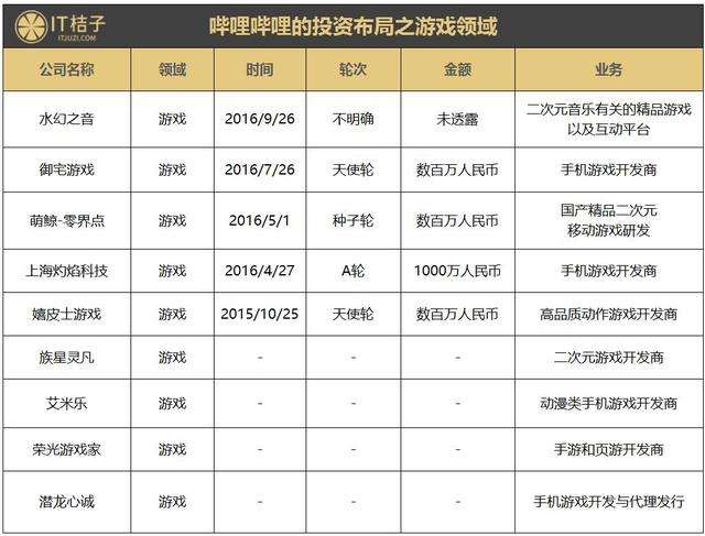 B站终于盈利了,据腾讯深网报道,今年前4月,B站营收达7.292亿元,并取得了9854万元的盈利。不出意外,今年将是B站连续亏损8年后首次盈利的一年。 1、B站非典型的生财之道 作为一家视频平台,奇怪的是,B站难得一见的盈利并不是靠广告和增值服务(广告)带来的。 在腾讯深网披露的B站前四月盈利数据中,游戏代理和联运收入6.41亿元,同比增长267%,在总收入中占比高达95%。 同时,在B站的成本构成中,游戏成本占比最大,相反视频内容成本在前四月不增反降,由去年的12.8%下降到8.8%。 有心栽花花不开,无心插柳柳成荫,视频平台B站的盈利之道最后是通过游戏代理和联运得来的,这多少让人有些意外。 照此趋势下去,与其说B站是家视频平台,还不如说它是个游戏代理平台。 实际上,B站作为一家视频平台,能够在游戏代理和联运上吃到甜头,这离不开其在过去两年来在游戏领域广泛的投资布局。 从IT桔子统计数据可以看出,B站15、16年主要围绕游戏领域投资了将近10家公司,主要包括嬉皮士游戏、萌鲸网络、御宅游戏、水幻之音、潜龙心诚、荣光游戏家、艾米乐,以及二次元游戏开发商族星灵凡等。