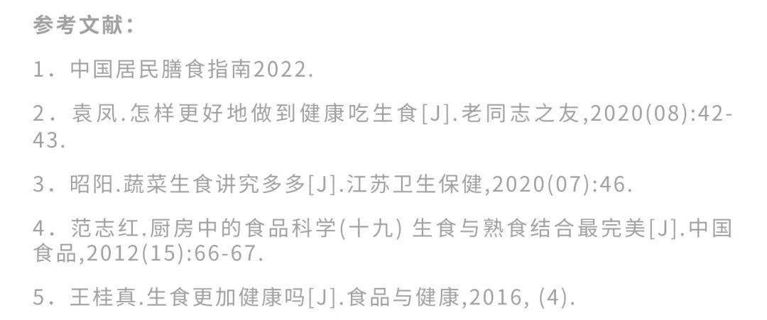 刺身 还有另一种令人难以放弃的生食——刺身,即鱼生、生鱼片,指将新鲜的鱼贝类生切成片,蘸调味料直接食用。 外观标志格调高、原料新鲜、口感柔顺鲜美。大多选择金枪鱼、鲷鱼、三文鱼、北极贝、甜虾等。富含优质蛋白质和不饱和脂肪酸,蛋白质质地柔软,无需烹调就可以食用。 食用小贴士 适当加热其实可以帮助蛋白质的结构发生伸展,从而增加蛋白质的消化吸收率。生的鱼肉、贝类等中存在一种抗硫胺素因子,会干扰人体对维生素B1的吸收利用。如果长期生吃鱼虾类,也容易缺乏维生素B1,会导致神经和血管系统的损坏,尤其对儿童来说,可能损害大脑的发育。 注意啦! 刺身、生鸡蛋等“时尚”生食,最大的敌人还是潜伏其中的寄生虫与致病菌,还有对胃肠道的刺激性,为了我们的健康安全,一定要先解决饮食安全问题!考虑到食材的营养吸收,一定要减少食用生鲜肉食的频率,如果因喜欢口感而选择生鱼片、生鸡蛋等食物,应该注意选择有食品监管部门公示的质量安全可靠的餐饮店选购生鱼片、生食用鸡蛋等。