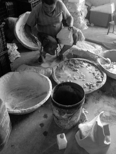 包果混合液被倒在白纸上,每层芒果之间都放一张这样的白纸