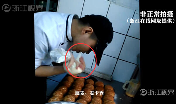 给即将过期的产品重新贴上标签,食品原材料已经过期结块,糕点师傅把奶油送到嘴里再涂到面包上……一名自称杭州麦卡秀内部员工的网友,将一段视频上传到浙江在线,被视频内容惊悚到的小伙伴们直呼“恶心”。 对此,麦卡秀所属的杭州展麦食品有限公司称,自己只是视频中的涉事门店供货商,提供一些监管服务。不过,浙江在线记者从余杭区市场监督管理局了解到,杭州展麦食品有限公司因猪肉冒充牛肉销售等问题,已被当地公安部门刑事立案。 内部员工实拍:奶油先送到嘴里再涂到面包上 视频显示,拍摄者是在某面包房内部,其中还看到了“华星”,“MU.BAKERY”等字眼,刚开始,几名穿着印有麦卡秀标识的员工正在把瓶装饼干上原有的标签撕掉,再重新换上新的标签。紧接着,拍摄者又拍到了过期的原材料,还有已经明显结块的面粉。 接下来的内容更加惊悚,一名糕点师傅正在给面包涂奶油,但每次涂奶油之前,他都要用嘴巴清理一下奶油的出口,偶尔还要偷吃点奶油。与此同时,这名糕点师傅还在和旁边的偷拍者聊天,聊天内容包括“我们有好几个名字,又叫展麦,又叫麦卡秀,还叫麦卡优娜”,还提到了去年3.15期间,面包房如何偷偷继续生产等。 据视频拍摄者称,自己曾是杭州麦卡秀华星店的一家员工,偷偷拍下了这些视频,希望把面包房在产品制作过程中的做法公之于众。此外,他还提到了门店猪肉当做牛肉卖,偷偷分装大包装产品,并“延长”保质期等问题。 浙江在线记者了解到,网友提到的麦卡秀,是杭州展麦食品有限公司的一个品牌。就在去年,该公司还曾陷入杭州广琪过期原料事件。 展麦否认视频中的面包房是自家门店 今天下午,记者联系到杭州展麦食品有限公司,对方一位王姓负责人回应了网友的举报内容。 这位负责人表示,杭州展麦独立从事面包糕点的生产,向麦卡秀品牌门店供应产品,是麦卡秀品牌的供货商。但视频中的企业名为“麦卡优娜面包房”,展麦仅作为供应商,与其没有直接关系。“麦卡优娜是上海的面包品牌,因为从上海进货不方便等原因,所以从杭州展麦拿货,麦卡秀只是代为管理。”对于该门店与麦卡秀的关系,该负责人做出如此解释。 “我们认为这家店的管理有问题,再加上市场监督局查处过,我们在未来可能无法掌控,所以就把这家店关掉了。”这位负责人说,视频上传者确实是门店员工,该员工作为操作一线员工未按照门店品质要求去执行,被老板处罚,心存怨恨,所以才将视频上传到网上。 浙江在线记者通过工商部门了解到,杭州展麦食品有限公司成立于2013年,由4名股东共同出资。许可经营项目为生产糕点(烘烤类糕点、月饼等)。而视频中提到的门店,工商注册名称为“杭州麦娜饮品店”。不过,这家门店的法定代表人,与杭州展麦某个股东名字是一样的。“这家门店可能是展麦的股东之一吧,我也不太清楚。”该负责人表示。 浙江在线记者在一些团购网站,以及麦卡秀天猫旗舰店上发现,麦卡秀把位于杭州市西湖区华星路的这家“麦卡优娜面包房”作为自己的门店之一。但杭州展麦食品有限公司方面否认视频中的这家门店与自己有关系。 市场监管部门:展麦公司将猪肉冒充牛肉销售 网友在举报中还提到,杭州展麦存在擅自更改生产日期,猪肉冒充牛肉销售等问题。对此,杭州市余杭区市场监管局表示,部分问题已经查实。 “去年12月份,我们在检查中发现,杭州展麦在没有分装生产许可证的情况下,擅自分装牛肉等产品,有些原料上的生产日期被涂黑过。”该局稽查大队大队长吴焕根表示,已经对无证分装的产品和原料全部扣押,目前调查已经结束。 更为严重的是,在检查无证分装的过程中,稽查大队还发现杭州展麦存在猪肉冒充牛肉的行为。“我们认为存在假冒伪劣嫌疑,我们就与余杭区公安局介入调查,也查实它存在这种行为,因为涉嫌刑事犯罪,我们就移交到公安部门,公安也已经立案调查。”吴焕根说。