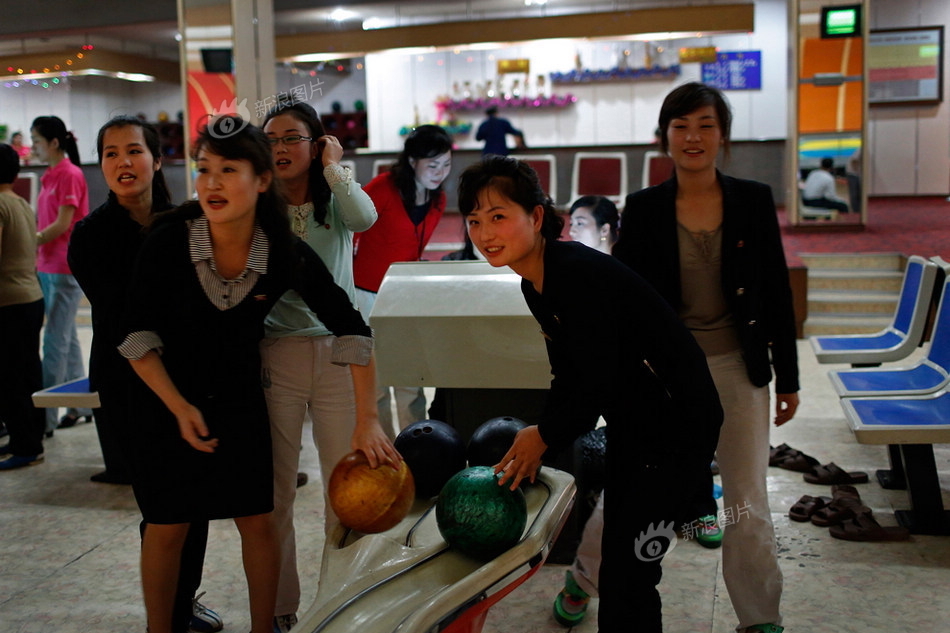 2012年9月19日,朝鲜平壤,市民在一家保龄球馆玩乐。