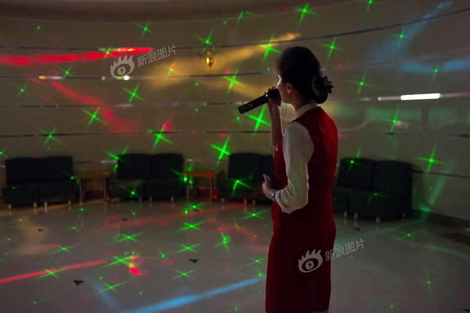 2013年2月23日,朝鲜,妙香山饭店酒店里,一名女性在唱卡拉OK。