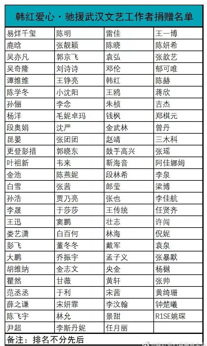 图片来源于财新2017年对韩红做过一次采访。 主持人问韩红,做慈善这么多年,最大的经验和教训是什么? 她说,经验就是自己亲手拿着钱送给老百姓,“让那些捐赠人,符合他们意愿地,去直接帮扶每一个受困的人。” 插播:韩红谈慈善,接受采访。 而韩红也言出必行,不仅本人多次身体力行,而且她发起的韩红爱心慈善基金会一直在努力完善制度,力争将每一份善款的来处和去处做到公开透明。 这一次的肺炎疫情中,韩红的表现有目共睹, 集结文艺工作者,筹集第一笔善款▽捐款部分名单