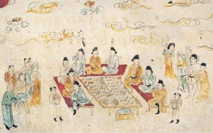 莫高窟第9窟-婚礼-晚唐 所以,夫妻之间,恩深义重,婚后生活应该充满了幸福与快乐,似鸳鸯双飞,琴瑟和鸣;生儿育女,儿子能出人头地,女儿要内外兼修;双方一起孝敬父母,和睦兄弟,家族关系美满和谐,生活富足;最后两人一起白头到老,死后也要同葬一处。 盖闻妇夫之礼,是宿世之因,累劫共修,今得缘会。一从结契,要尽百年。如水如鱼,同欢终日。生男满十,并受公卿。生女柔容,温和内外。六亲欢美,远近似父子之恩;九族邕怡,四时如不曾更改。奉上有谦恭之道,恤下无傥无偏。家饶不尽之财,妯娌称长延之乐。