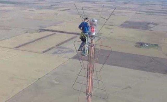 男子在460米高空信号塔换灯泡,换一次13万,网友们敢尝试?