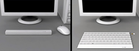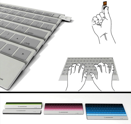 这是一款无线折叠键盘,将宛如折叠信纸一般的键盘伸展开来之后,拔出USB信号发射器,将其插到电脑上,这款键盘即可进入工作状态。漂亮的扇形折叠设计让键盘体积缩小,方便了用户携带、移动。