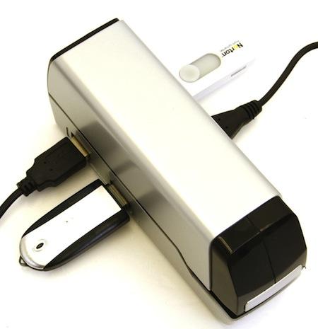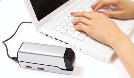 这款不锈钢电动钉书机除了可以帮您整理文件之外,还能透过自身附有的4个USB接口给您的电脑增加可接入端口,方便文件的导入和传输,算得上是一款实用的办公室文具。