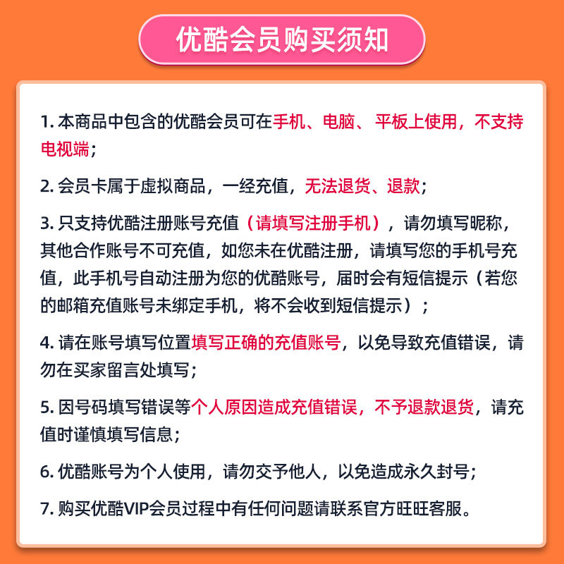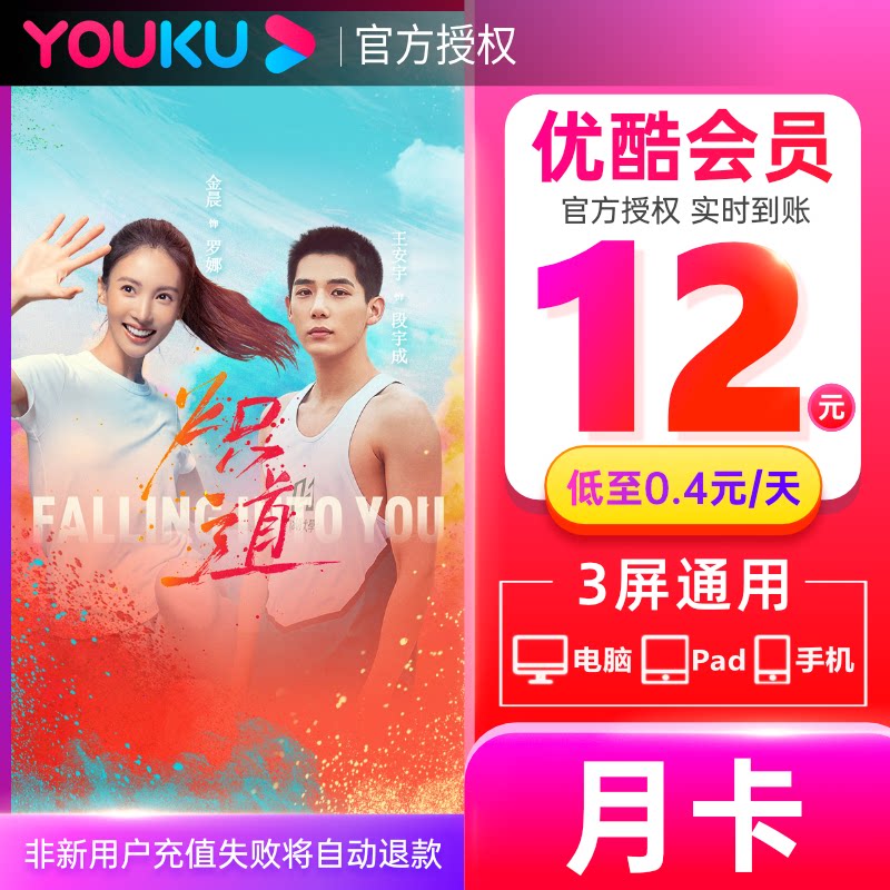 【月卡12元】优酷会员1个月youku土豆视频vip会员月卡手机号秒充