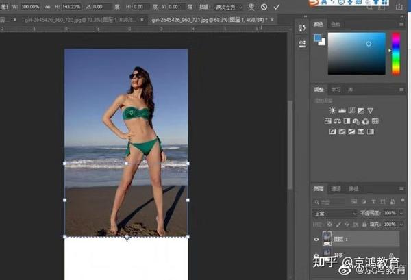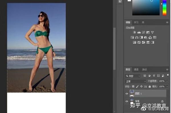 5、Ctrl+D取消选区,使用裁剪工具裁去多余的空白区域。这样就做好了!其实只要是不要太过,是看不出p不p的,但你要是本身腿很短,想要个1米长,那就总而言之,要实际点,最好参考一下你的身材比例。