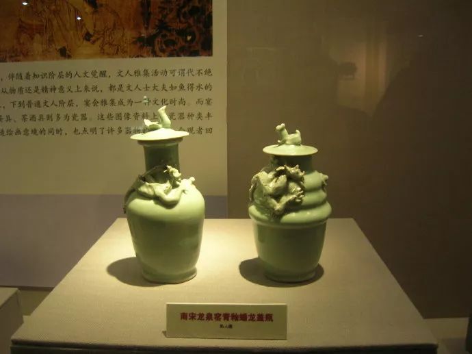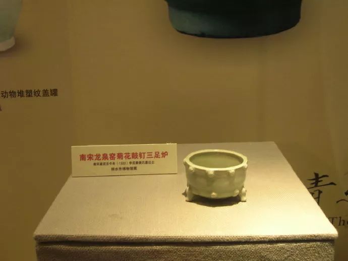 这一件象钮盖罐,是南宋龙泉窑标准器中绝无仅有的造型,记得在《东方博物》中见到过她的丽影。在确切纪年的(南宋嘉定壬午年,即1222年)南宋墓中一次性出土这么多件龙泉窑精品尚属首次,专家们一致决定将六件龙泉窑瓷器定为国家一级文物。