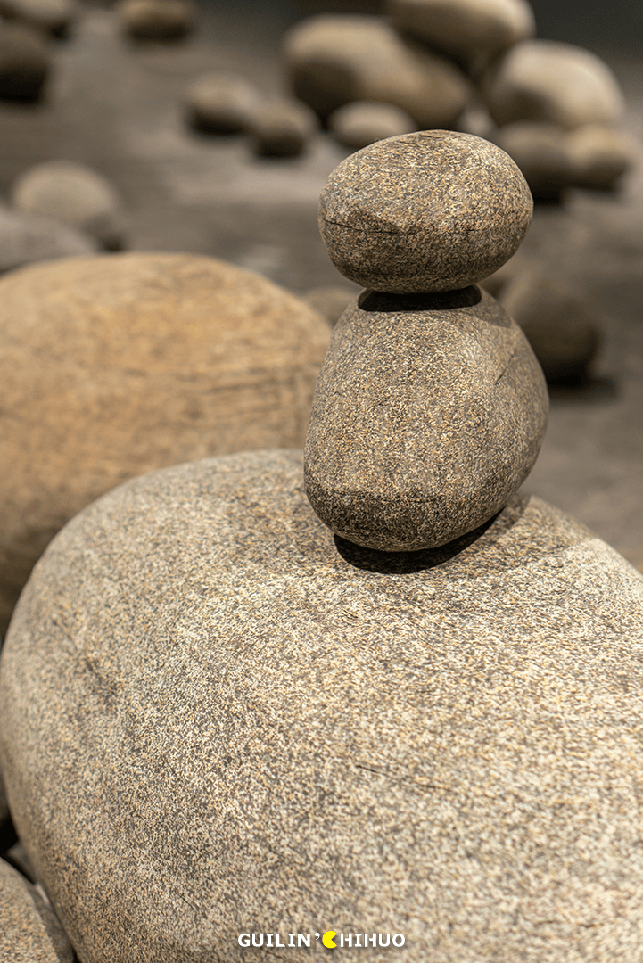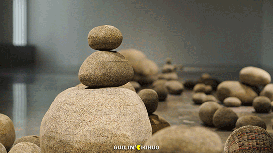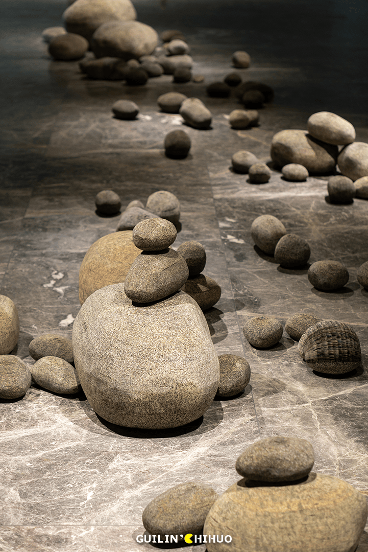 一块块报纸塑造的鹅卵石,在展厅中模仿一个似曾相识的河滩,每一块鹅卵石都是百千层报纸堆叠而成,每一层都记载着历史的痕迹,但它们静静地安卧在那里,等待认知它的伯乐,等待每一位读懂它的人。