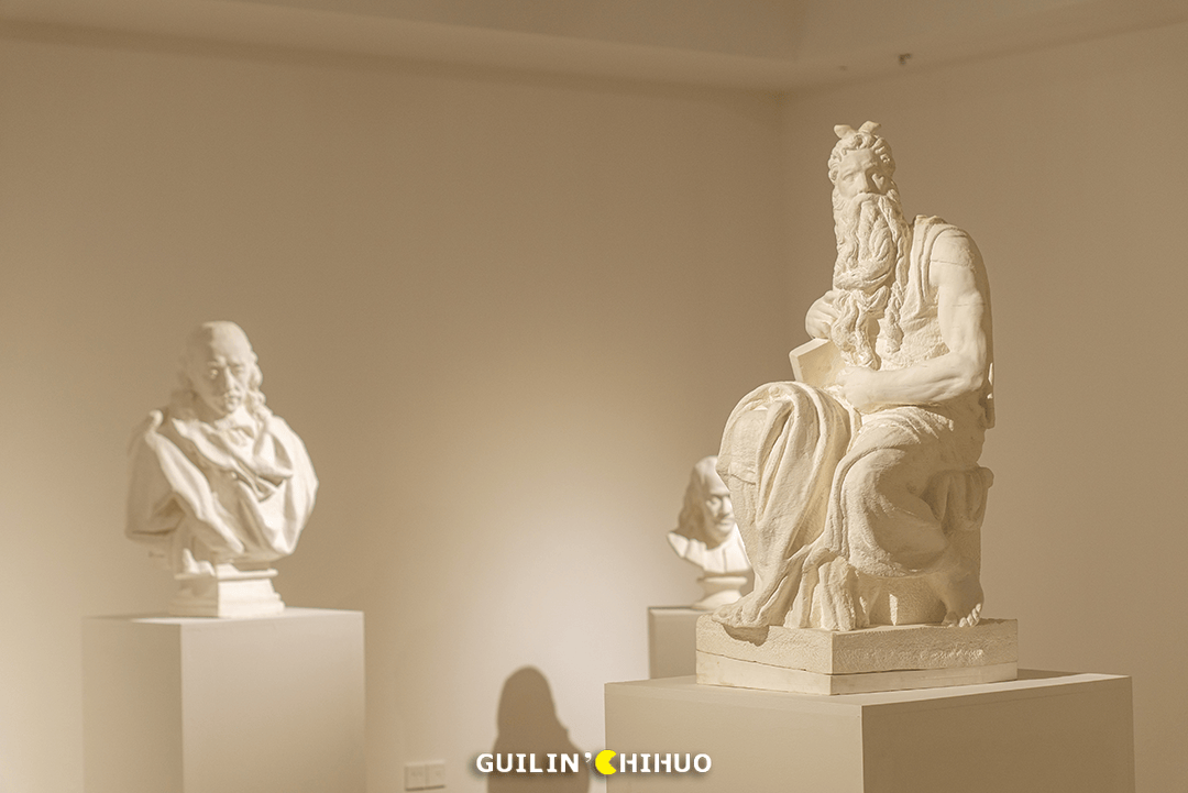 走进展间,会让人以为这就是真的石膏像。超近距离观赏,还能看出用纸模拟石膏雕刻的逼真细节,就连雕像的底座也是用纸张制成。