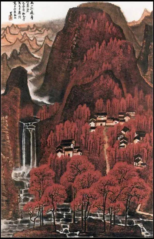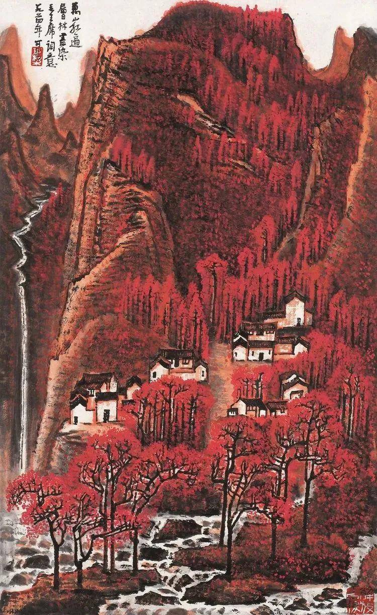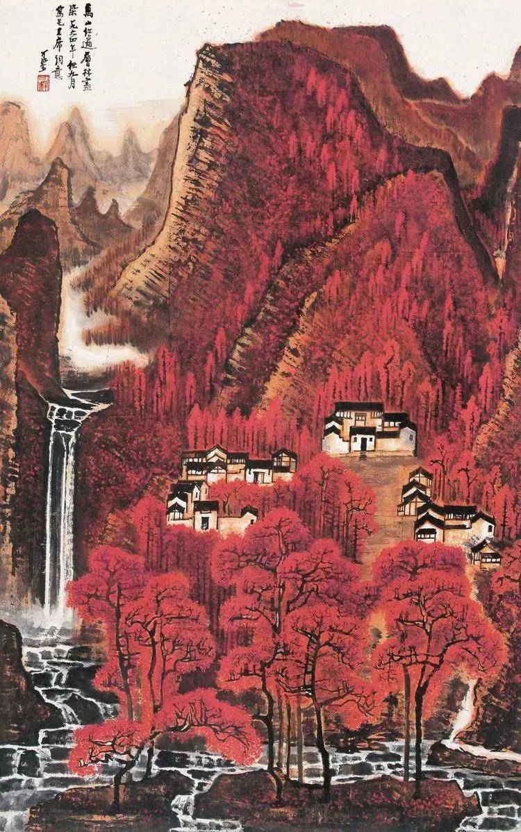 此作画于从化,款识题为“万山红遍,层林尽染,一九六三年可染于从化”,此画1963年出版于第6期《美术》杂志。