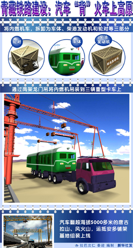 图表:青藏铁路建设:汽车“背”火车上高原 新华社发 “让工程服从人”的全新理念受到整个青藏铁路沿线建设单位的共识。所有建设单位纷纷动脑筋,群策群力,保障职工在高原有一个良好的生存条件。让我们实地看看一个工程局的指挥部吧。 青藏铁路二期工程上马后,中铁十二局来到了有着上千平方公里的可可西里无人区,这里是长江源头最典型的高山寒漠地带,海拔4600米,气候恶劣,植被稀疏,缺少淡水,人在这里很难生存。 有一种儒雅气度的十二局指挥长余绍水在率领5000多人出征前郑重地向局领导表态:带上去多少人,就带下来多少人。 他们投入1000多万元购买医疗设备,建立医院,仅医生就上来80多位,建起了一流的工地医院。 在无人区安家不能那么随意,首先房屋不能落地生根,如果那样的话,高原冻土就会受到破坏,十二局想出好办法:建“空中楼阁”,用砖把房屋支起来,既不破坏下面的冻土,房屋又美观大方。同时买几十台暖风机取暖,一台2万多元,这样即使外面是零下40摄氏度,屋里仍然能保持零上18摄氏度,为职工营造了一个温暖的春天。 2001年8月,余绍水针对铁道部领导检查工地时说的高原夜间室内温差大,要防止职工起夜上厕所受冻着凉诱发肺水肿,便把夜间上厕所问题当个大事来抓。他冥思苦想,终于从移动的飞机舷梯产生联想,很快设计出一种移动厕所,安装了取暖设备,夜间就接到宿舍门口,白天推到指定地点冲洗干净。职工不再受“狂风吹腚冷,‘方便’患感冒”的死罪了,这等于为职工身体又设置了一道安全屏障。 十二局职工们刚下工地不久,余绍水就发现大家体重都不同程度地大幅下降,最多的达十几公斤。原来是高原反应人本来就没有胃口,再者是山上气压低,氧气少,米饭煮不熟,蒸出来的馒头黏的,炒菜也炒不出味道。余绍水多方探访考察,很快想出“妙招”:把食堂基地建在格尔木!在指挥部格尔木办事处设立食品采购加工中心,将米面做成成品,将鸡鸭鱼肉加工成半成品和卤菜,将新鲜蔬菜择洗干净、分袋封装,每天用冷藏式生活供应车往山上送。不仅“吃饱、吃好、吃得有营养”的问题迎刃而解,而且还节约了山上用水,减少了山上的厨房垃圾,降低了伙食成本。 中铁十二局集团的工地横跨清水河和楚玛尔河,但河水含有的有害物质超标,不能直接饮用,4000多名建设者的生活用水,要到120多公里之外的昆仑山下纳赤台去拉,一吨水成本要100元。“水贵如油”不说,遇到大雪封路、公路堵车,往往吃喝都成了问题。余绍水找中国军事医学研究院合作,在清水河河畔建起现代化的净水厂,日产完全符合《生活用水卫生标准》的纯净水170吨,从根本上解决了建设者的用水难题。