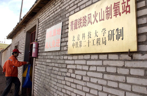 这是中铁十七局唐古拉山施工区的一名医生通过高压氧舱操作台为舱中职工提供吸氧服务(2003年6月19日摄)。青藏铁路修建在被称为“生命禁区”的青藏高原上,施工环境恶劣。为保障铁路建设者的健康,铁道部和青藏铁路建设总指挥部在沿线共设立医疗机构115个,每10公里一座医院,职工生病在半小时内即可得到有效治疗。此外,青藏铁路沿线还建立了17座制氧站,配置了25个高压氧舱,人性化的设施和制度有效地保障了职工的生命安全,创造了高原病零死亡纪录。新华社记者侯德强摄 领导者许下了郑重的承诺 2001年2月,党中央、国务院决定青藏铁路格尔木至拉萨段开工建设后,这条世界上海拔最高的铁路建设引起了全世界的关注。沿线历年平均气压仅为海平面的60%左右,空气含氧量比海平面减少近一半。此外,沿线全年平均温度为零下5摄氏度,极端最低气温为零下45摄氏度。这里年平均相对湿度只有50%左右,最大风速却高达30米/秒以上。