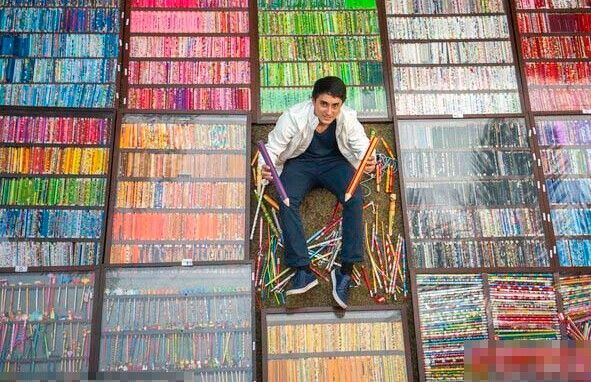 6、铅笔收藏家 印度新德里,15岁的印度高中生Tushar Lakhanpal和他庞大的铅笔收藏。他从4岁起开始收藏铅笔,至今已拥有来自40多个国家的14000多支铅笔。
