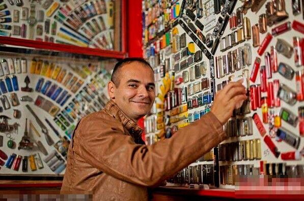 7、打火机收藏家 一间名为“Lingo”的酒吧的墙上装饰着3900个各种颜色、款式的打火机,这些均来自酒吧老板的多年积累。