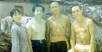 4.1987年《红高粱》电影主创(左起巩俐、莫言、姜文、张艺谋)