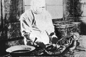 与其他实验不同的是,731部队臭名昭著的实验不止一例,而是目前世界历史上规模最大的细菌武器研究、实验及制造基地。 人猿杂交实验 1927年,白俄罗斯报纸《俄国时代》刊登一则消息,内容是关于伊万诺夫教授试图在苏联苏呼米猿猴繁殖基地进行人猿杂交实验,这在当时引起了轩然大波,不过很多科学家认为这种实验纯属无稽之谈。