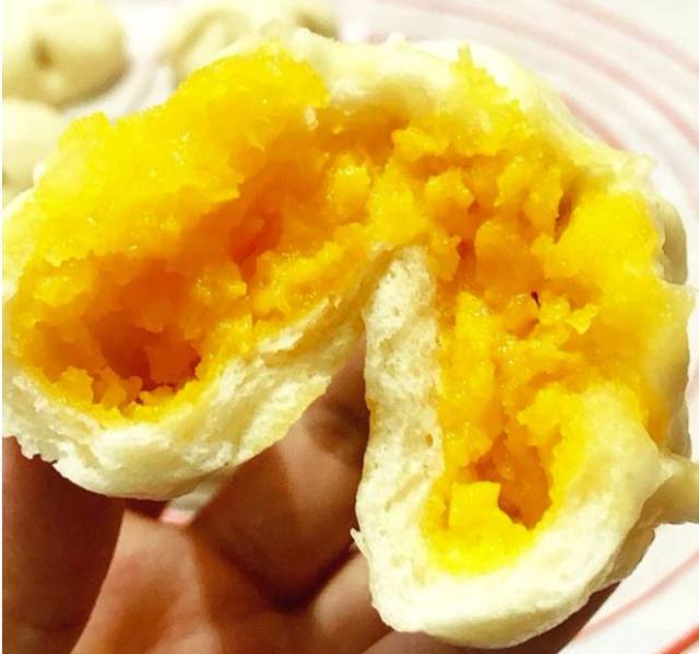 5. 每个包子大概塞鹌鹑蛋大小的奶黄馅即可,直接包裹成圆圆的形状,上锅蒸熟后,奶黄馅儿的甜蜜,咬一口甜到心里~