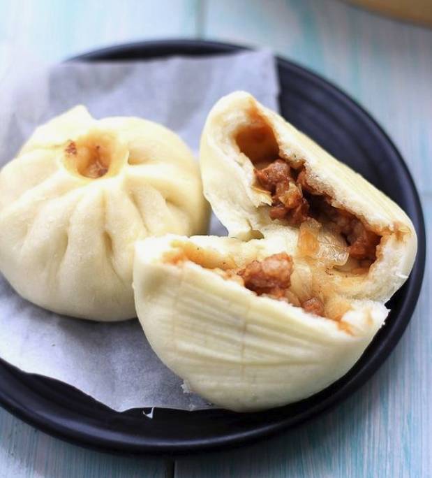 3. 然后包成包子形状,上锅蒸熟,酸辣可口的泡菜猪肉包就做好啦。