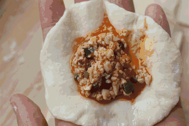 / 开 口 型 / 捏到收口处连接开始起褶的地方,最后用手指捏住旋转出褶子边和一个圆圆的凹陷,就是开口型的了。具体手法可以重温一下上面蒸包子技巧的动图哦~