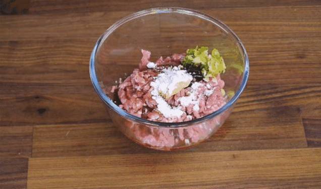 馅 料:猪肉末350g、葱姜末各1大勺、生抽1大勺、盐1小勺、胡椒粉适量、淀粉2小勺、酱油2小勺、清水适量 做 法 1. 将葱姜末等所有调料放入猪肉末中,搅拌均匀;
