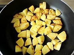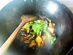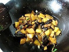 主料 土豆 (2个) 长茄子 (1个) 青椒 (2个) 准备好所有的食材。 不粘锅稍倒一点油倒入去皮切块的土豆煎至。 煎至土豆两面微黄已熟关火。 炒锅到油烧热倒入茄子翻炒。 炒至茄子表皮起皱变软,在爆香葱姜蒜。 倒入土豆翻炒均匀。 加入酱油,糖,盐。 再加少许水翻炒片刻。 加入青椒块和少许鸡精翻炒。 加入适量的水淀粉翻炒均匀。 最后淋入香油翻炒均匀关火。