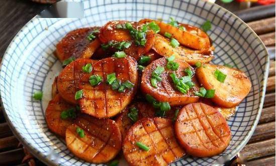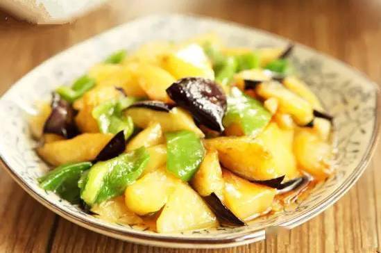 主料: 紫皮茄子一根,土豆 1 个,柿子椒 2 个 辅料: 盐少许,植物油适量,生抽一大勺,姜1小块,小葱1根,白糖1/4勺 步骤: ①茄子、土豆、青椒分别洗净切块; ② 锅内倒适量植物油烧热,倒入土豆炸至金黄色; ③土豆捞出沥油,倒入茄子炸至金黄色捞出沥油; ④ 锅内留底油,倒入葱姜爆香,调入生抽和白糖; ⑤ 倒入炸好的土豆、茄子,翻炒至食材变软; ⑥ 青椒块倒入锅内,炒至断生,调入盐炒匀即可。 烧汁杏鲍菇
