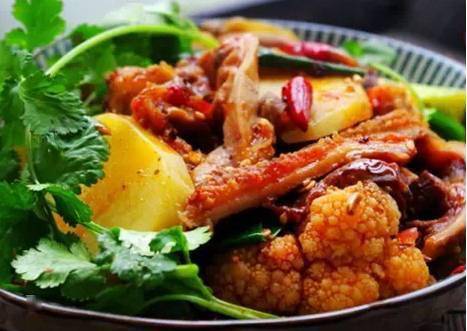 主料 牛杂500g、花菜半颗、土豆1个 辅料 不二食堂清油火锅料1/2瓶≈140g、香菜50g、干辣椒30g、葱2根、姜10g、蒜10g、食用油1大匙、老抽1小匙、生抽1小匙、胡椒粉1小匙、糖1小匙、花椒粒5g、香油1小匙、鸡粉1小匙 步骤 1.牛杂洗净,入高压锅30分钟 2.土豆切片,花菜切小块,姜切片,蒜拍碎,葱切段,香菜洗净,干辣椒剪段 3. 土豆和花菜焯水至6成熟,捞起待用 4.牛杂晾凉,切条,煮牛杂的汤汁待用 5.锅热,入食用油,姜蒜,花椒,清油火锅料,干辣椒,炒香,入牛杂。调味:生抽,老抽,鸡粉,糖,胡椒粉。入牛杂汤汁,加盖,小火焖,使香辣味浸入牛杂 6.待汤汁减少,适时将半熟的土豆和花菜倒入翻炒, 入鸡粉调味,起锅前淋少许香油,加香菜 溜肉段