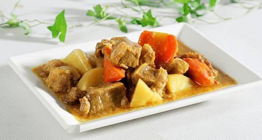 主料: 瘦肉500克,土豆1个,洋葱半头,胡萝卜1根 辅料: 咖喱1盒,盐少许,植物油适量,料酒适量,姜1小块,椰浆1袋,葱段适量 步骤: ①将瘦肉改刀切成牛肉块,土豆去皮切成滚刀块,洋葱切成丝,胡萝卜切成块备用。 ② 锅中加入能没过瘦肉块的水,放入料酒、姜片、葱段、瘦肉块大火煮开撇去浮沫,改小火煮到七成熟捞出备用。 ③咖喱块加入少量热水稀释备用。 ④ 另起锅加入适量植物油,油温七成热放入葱丝炒香,然后下入瘦肉块继续翻炒,再放入土豆块、胡萝卜块一起翻炒。 ⑤ 再放入挑好的咖喱汁和能没过食材的椰浆,大火煮开后改小火煮熟,中间不停的搅动,以免粘锅。 地 三 鲜