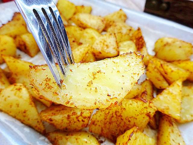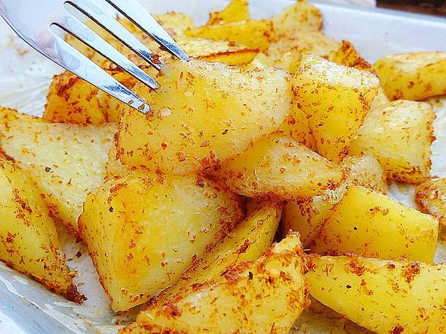 土豆的做法很多很多,但是烤土豆却是我稳固的心头好。今天我分享的美味做法就是烤土豆。烤土豆的方式也有多种,可以把土豆整个烤、可以切片烤,更可以切块烤,今天我做的就是烤土豆块。 曾经喜欢吃炸薯条,油炸食品的魅力是几句话描述不出来的,但是热量也真的是高,现在是敢想不敢吃。但今天的这个烤土豆的做法,诱惑力一点也不输炸土豆,同时吃起来不腻人、越吃越香,绝对是停不下口的感觉。
