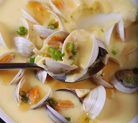 用料:牛奶250毫升、鸡蛋3个 调料:橙汁30毫升、白砂糖 做法: 1、橙子掏空肉。 2、鸡蛋打散,按照5的比例加入牛奶,拌入些许虾蓉。 3、上锅蒸15分钟左右。 2蛤蜊蒸蛋