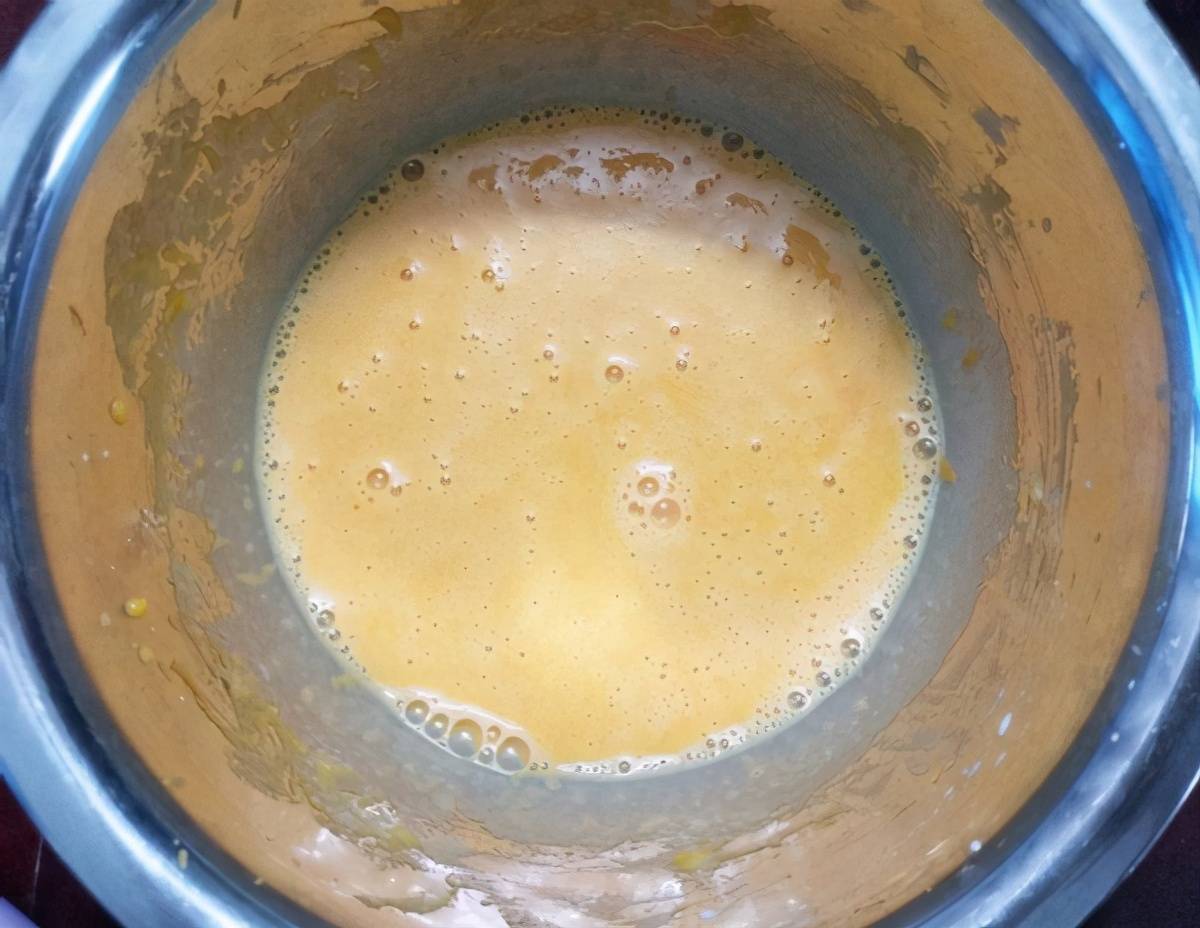 【烹饪窍门】: 1、加糖的时候需要分三次加,大家不要一次就把所有糖都倒进去了。 2、蛋糕装到模具里之后往桌子上轻轻摔一下,这样能够震出大气泡,吃起来口感更蓬松。 3、因为我的鸡蛋比较小,所以用了三个,大家根据刻度来用鸡蛋就行了。
